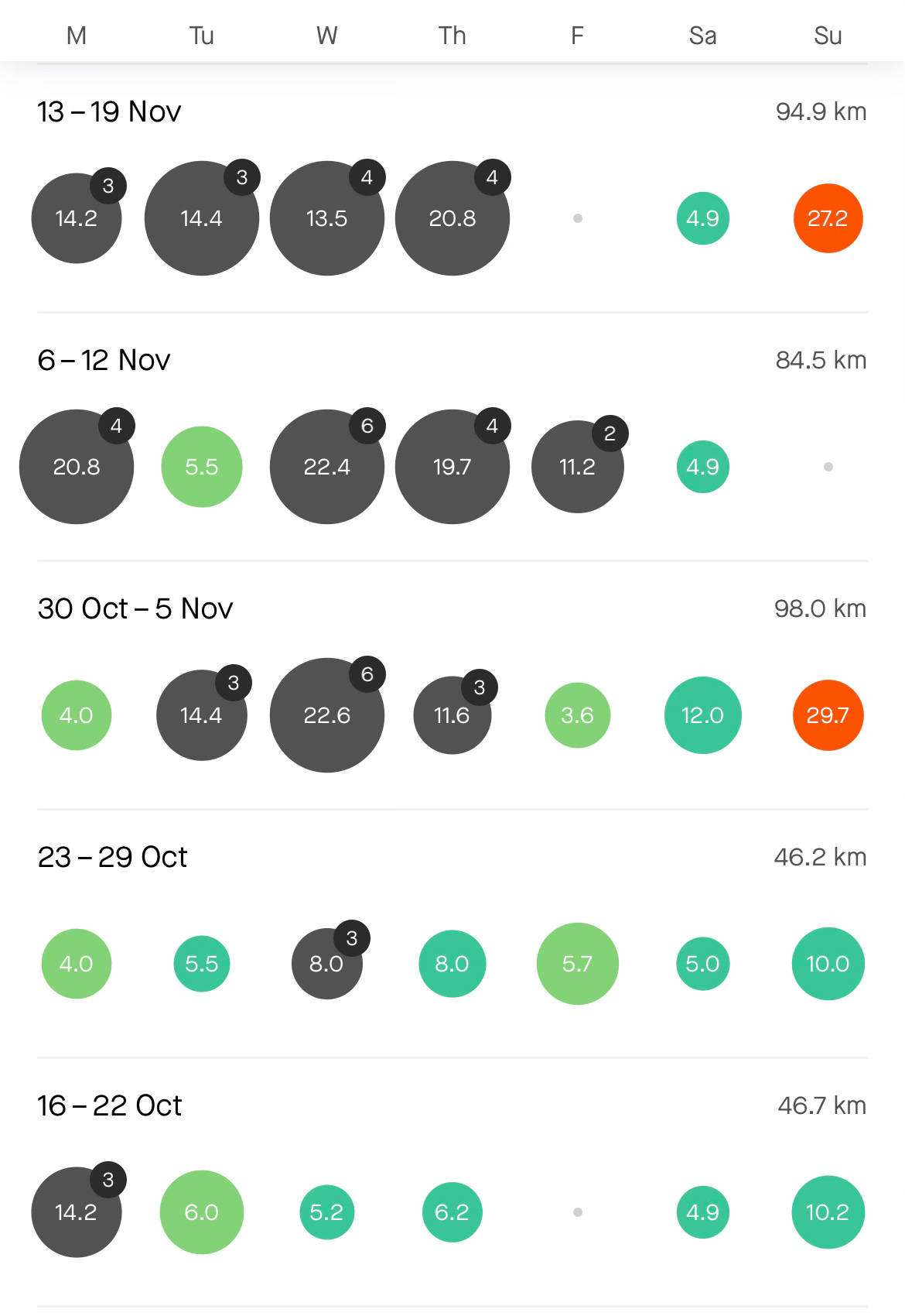 And I can get a visualisation of which days are good training days and which ones I find it hard to make the time: